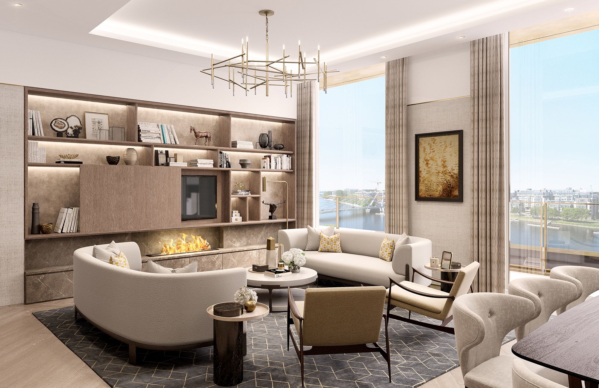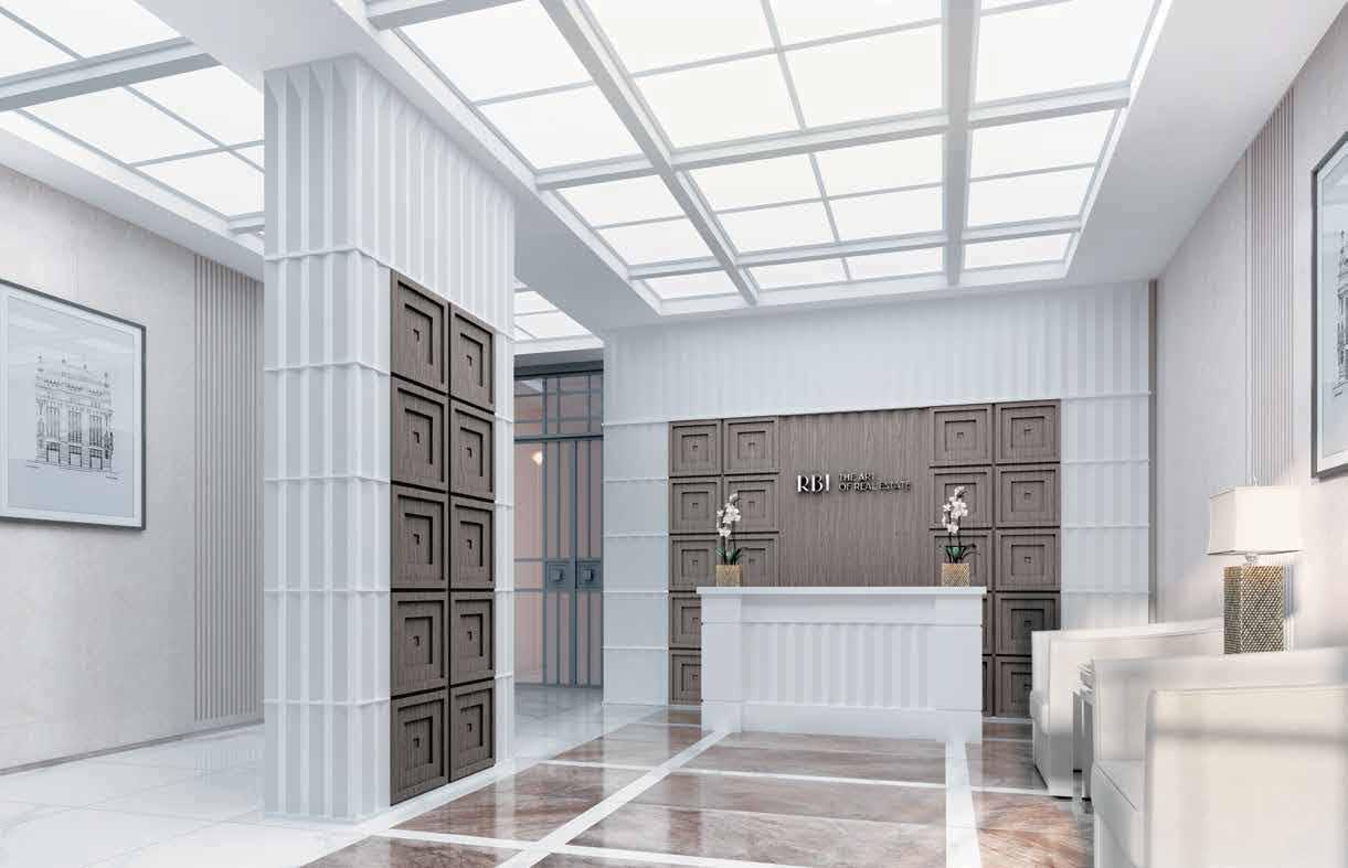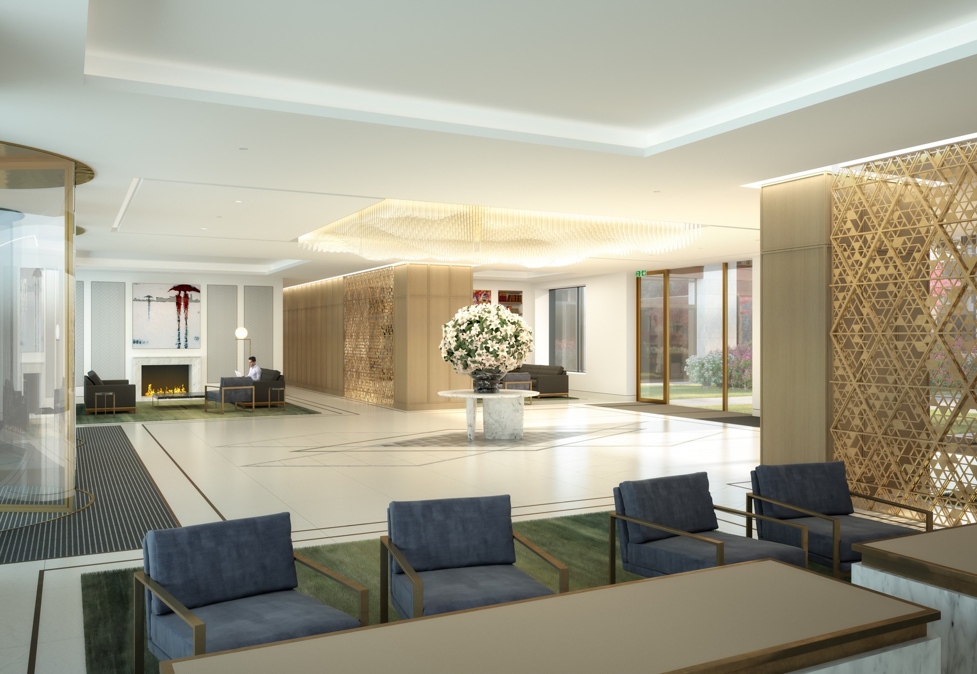 - Лобби с камином, библиотекой и зоной для приёма гостей