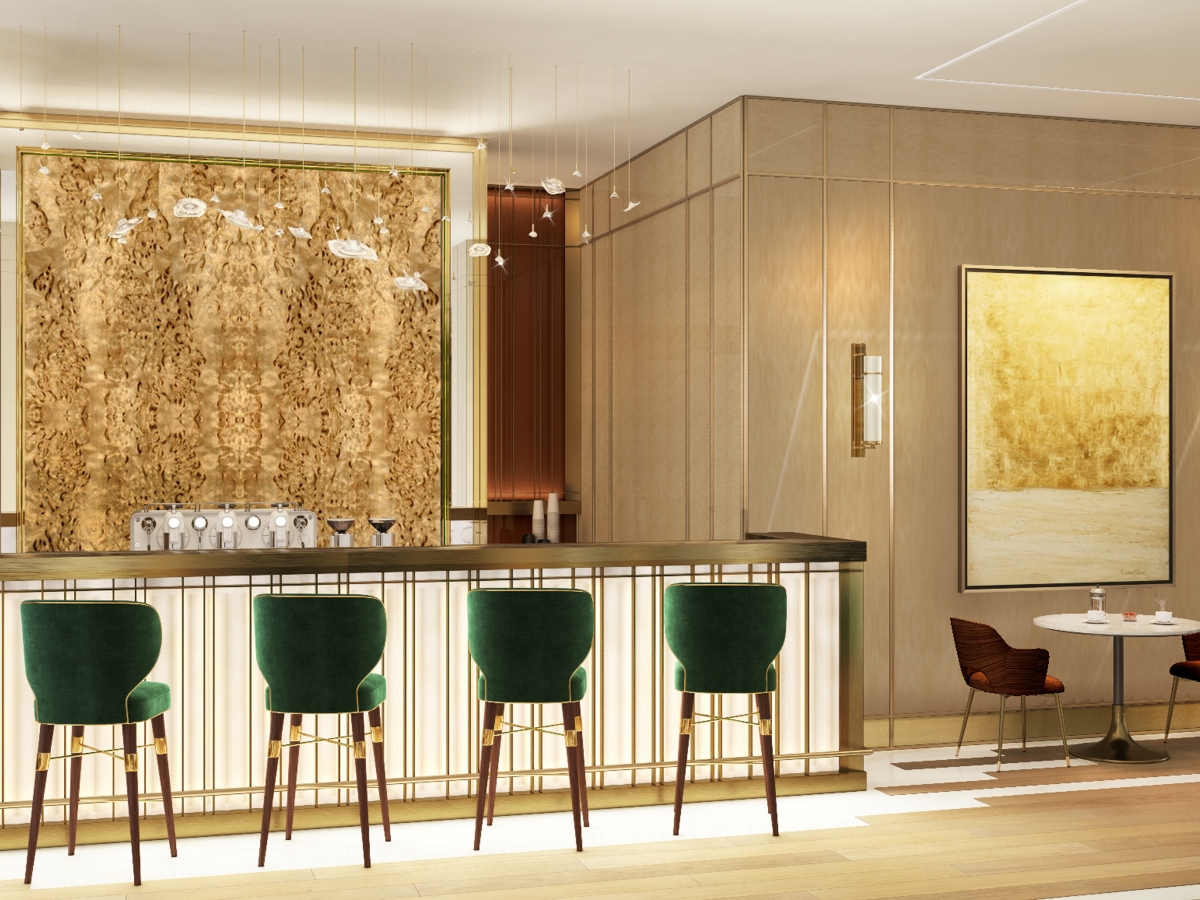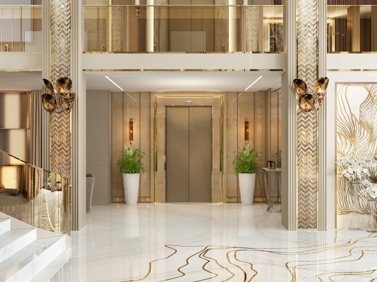 роскошная входная зона всех оттенков золота с лобби-баром,